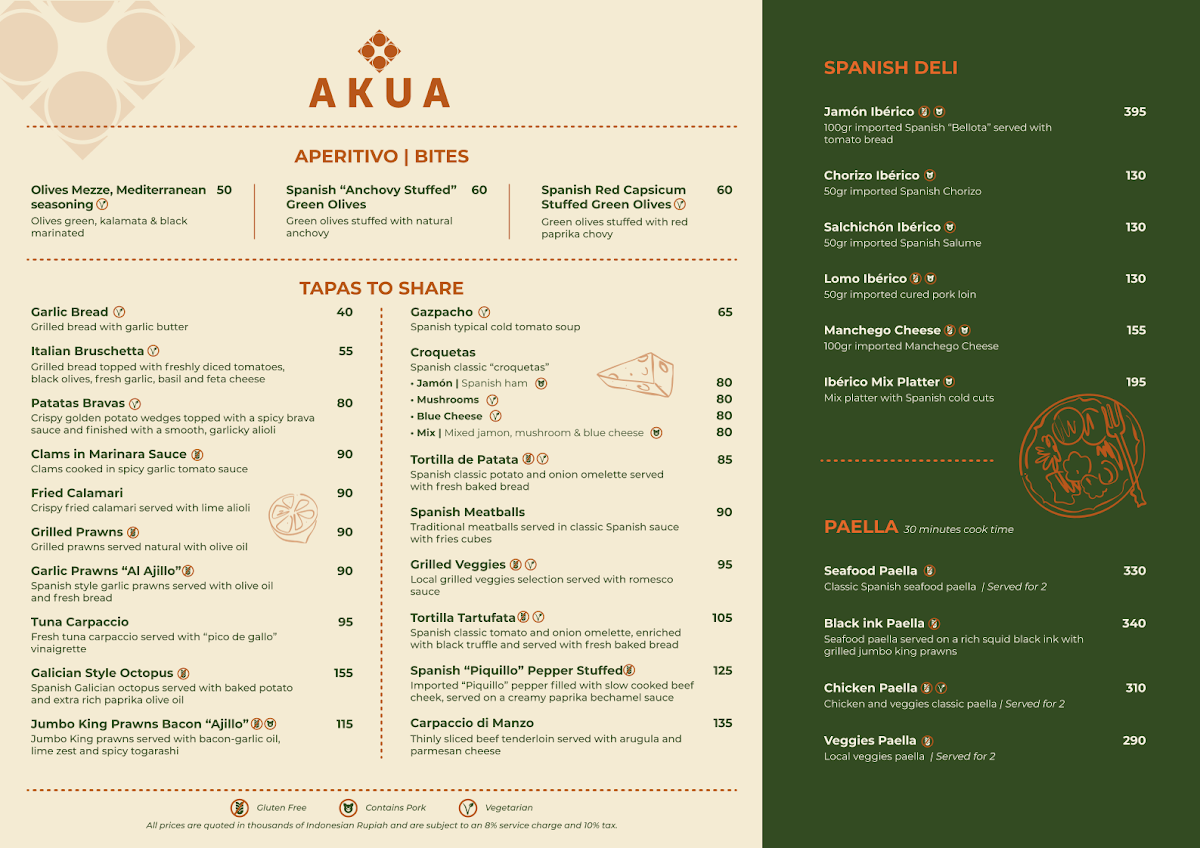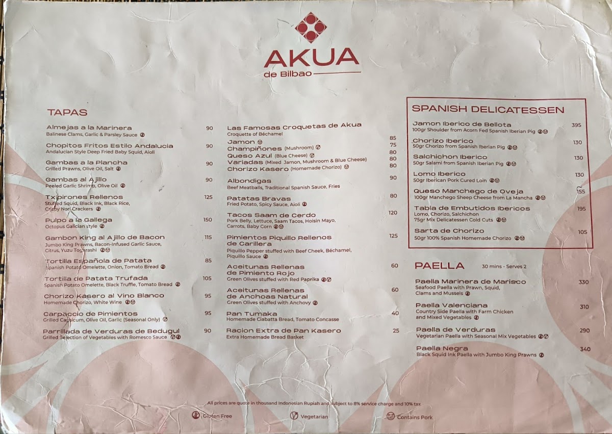 AKUA de Bilbao is a charming tapas restaurant nestled in the heart of Jimbaran, Bali. Known for its vibrant atmosphere and exquisite Mediterranean flavors, the menu is a delightful fusion of classic and signature dishes. The Margherita pizza, topped with fresh basil, is a classic favorite, while the Iberica showcases a blend of mozzarella, fresh tomato, and Spanish Jamon Serrano, evoking the essence of Spain. Guest reviews highlight standout dishes such as the Balinese clams and the incredible piquillo pepper stuffed with beef cheek, both praised for their rich flavors and tender textures. Cocktails flow generously, with a popular 2-for-1 deal enhancing the dining experience. Whether celebrating a special occasion or enjoying a casual meal, AKUA's expert staff provides attentive service that makes every visit memorable. Step into this stylish eatery for a truly enjoyable culinary adventure.